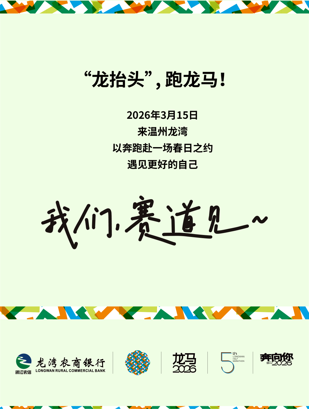 特别说明:为统一传递赛事热情与期待,请在视频结尾处加入以下内容(可采用文字、口播、字幕或创意画面等形式呈现):龙抬头,跑龙马。3月15日,我们赛道见!