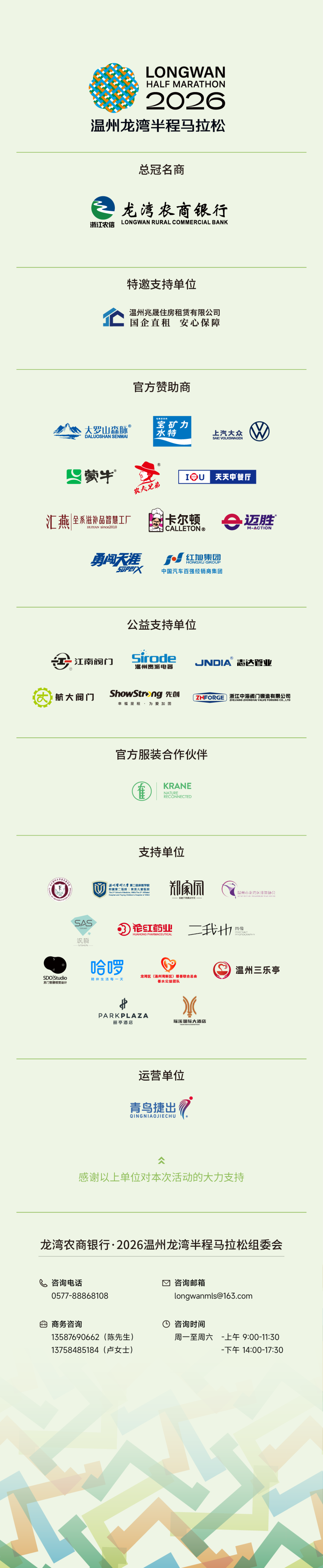 本次冠名是龙湾农商银行与温州龙湾半程马拉松的第五次合作。龙湾农商银行坚持发展成果与社会共享,以实际行动践行饮水思源,并大力支持体育事业发展。